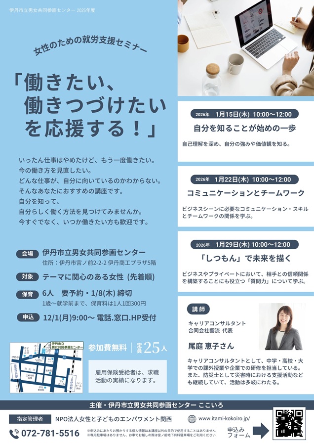 | 申込 | 12/1(月)9:00〜 電話.窓口.HPにて受付 |